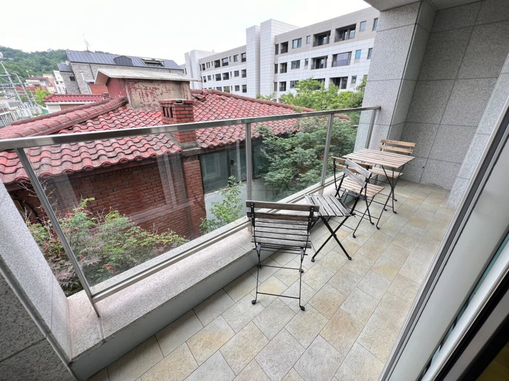 The balcony offers some seclusion and also a people-watching angle of the street below.
