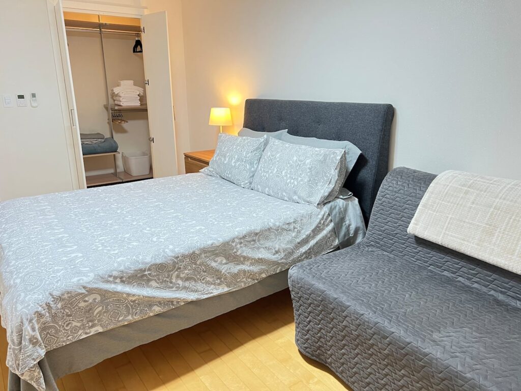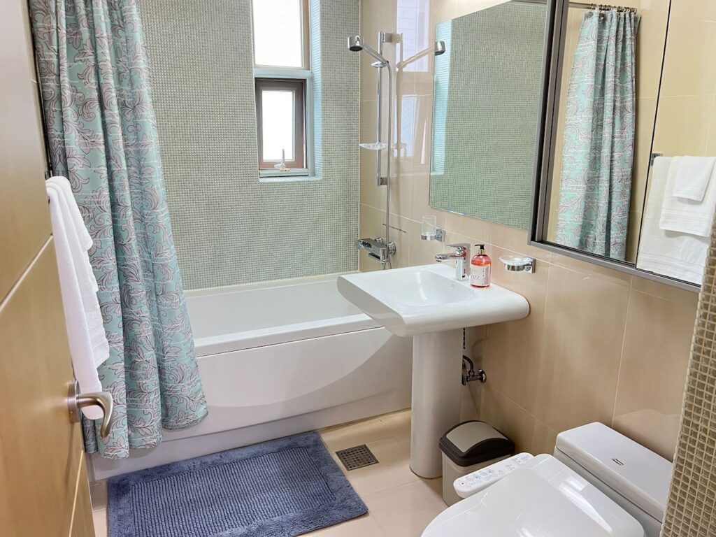 Bedrooms all have queen beds, room-darkening curtains, lots of closet and storage space, and comfortable work spaces. The master and second bedrooms include sofabeds. The master bedroom has a make-up room, a mirror and lots of closet and storage space. The adjoining master bathroom features an electronic bidet, a full-size bathtub and shower. The second bathroom features a step-less glass stall, rain and handheld shower heads and lots of mirrors.