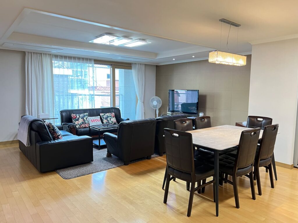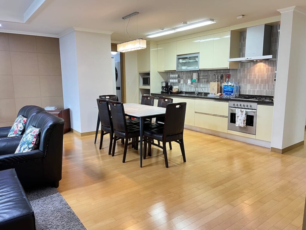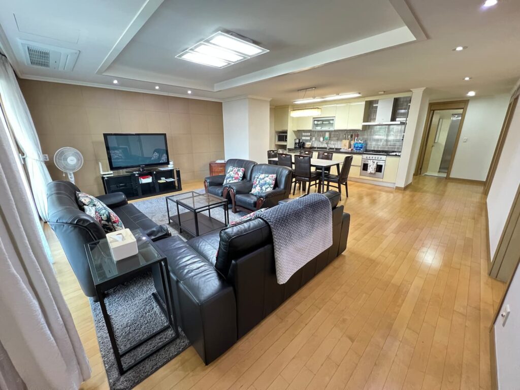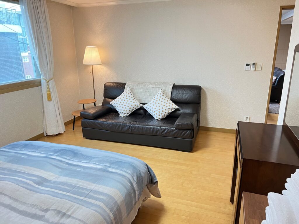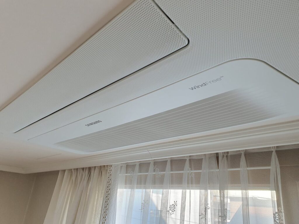 This apartment has been upgraded to a new Samsung WindFree™ heat-pump air conditioning system. All rooms have independent climate controls.