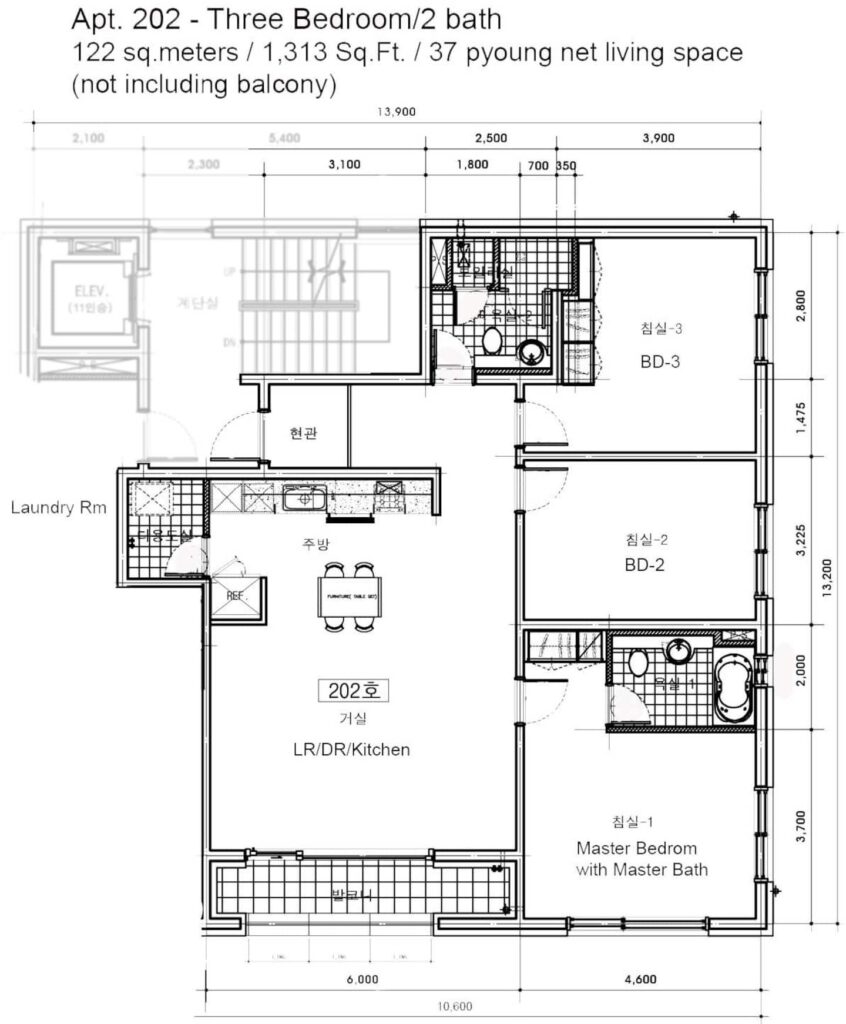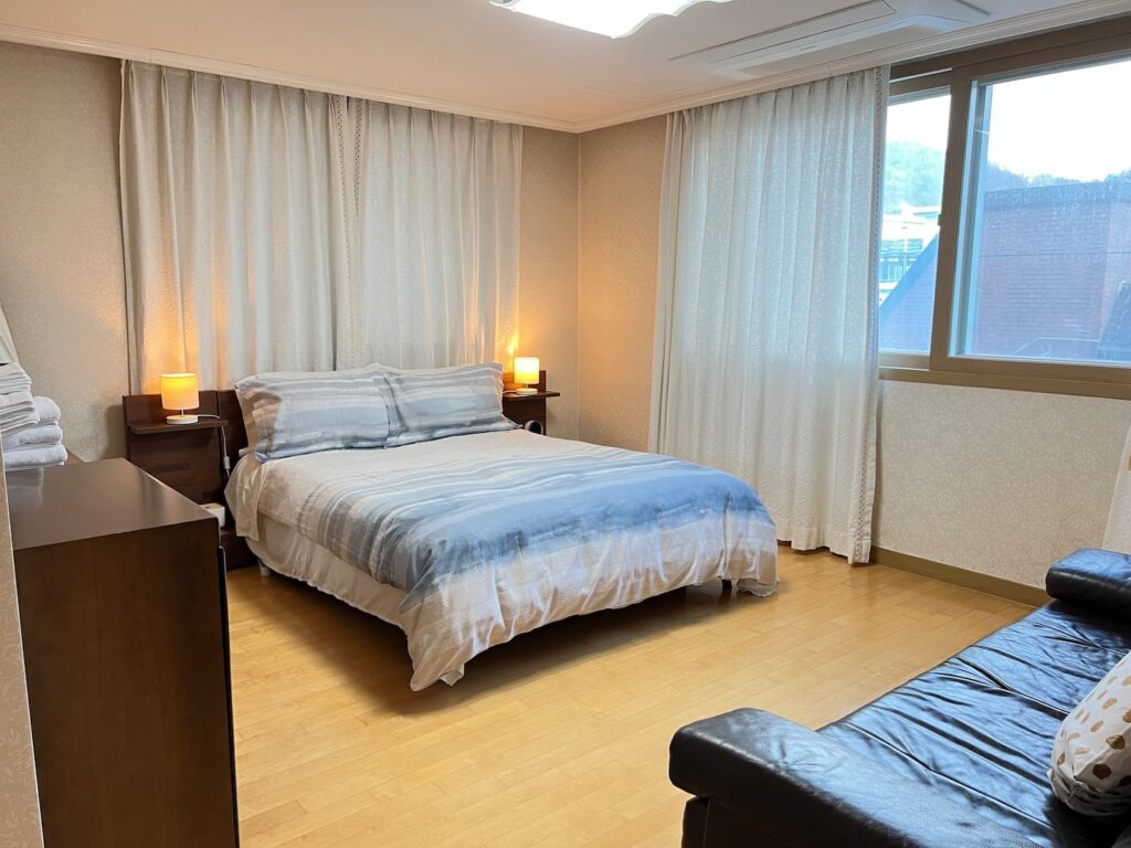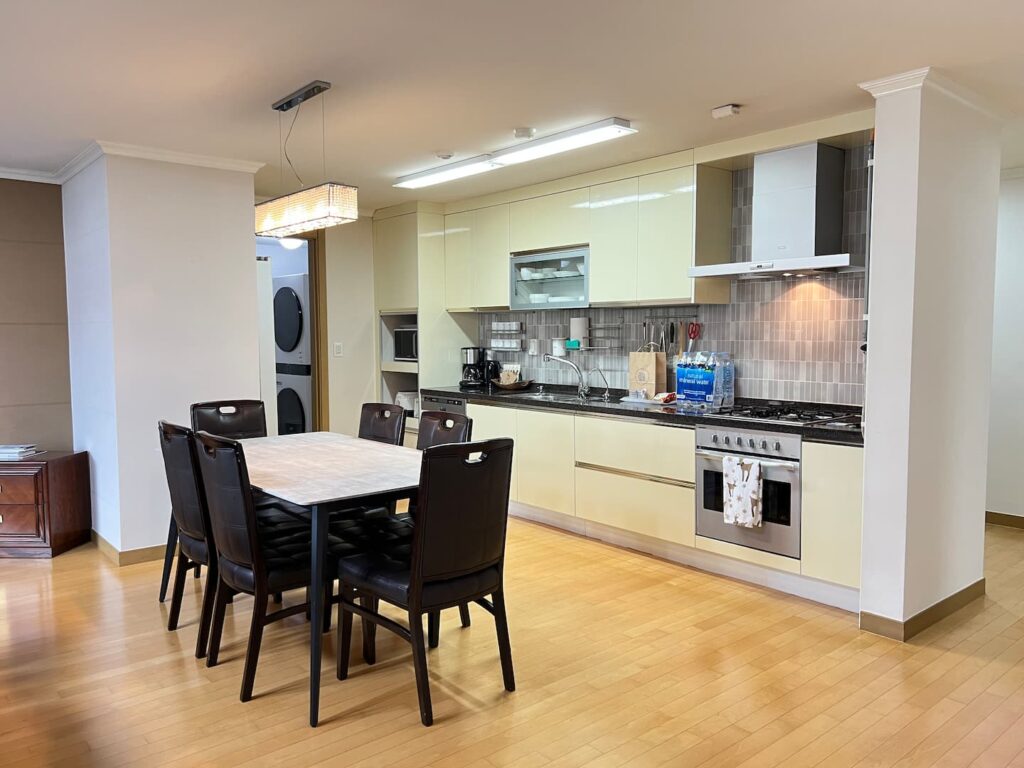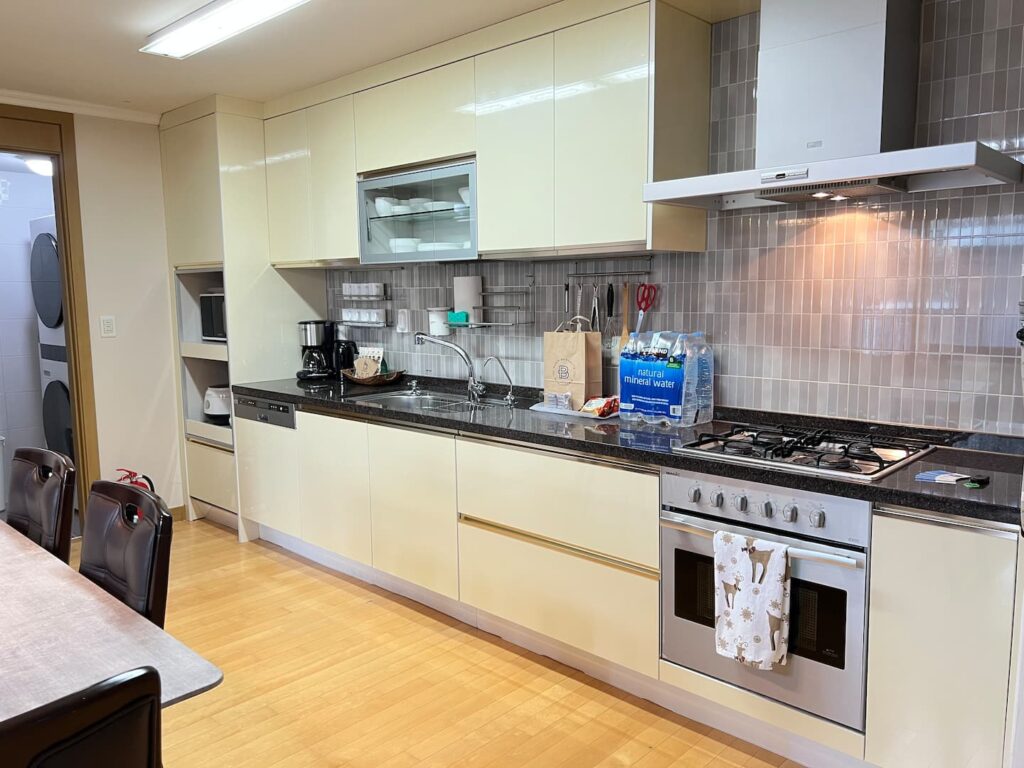 This apartment has been upgraded to a new Samsung WindFree™ heat-pump air conditioning system. All rooms have independent climate controls.